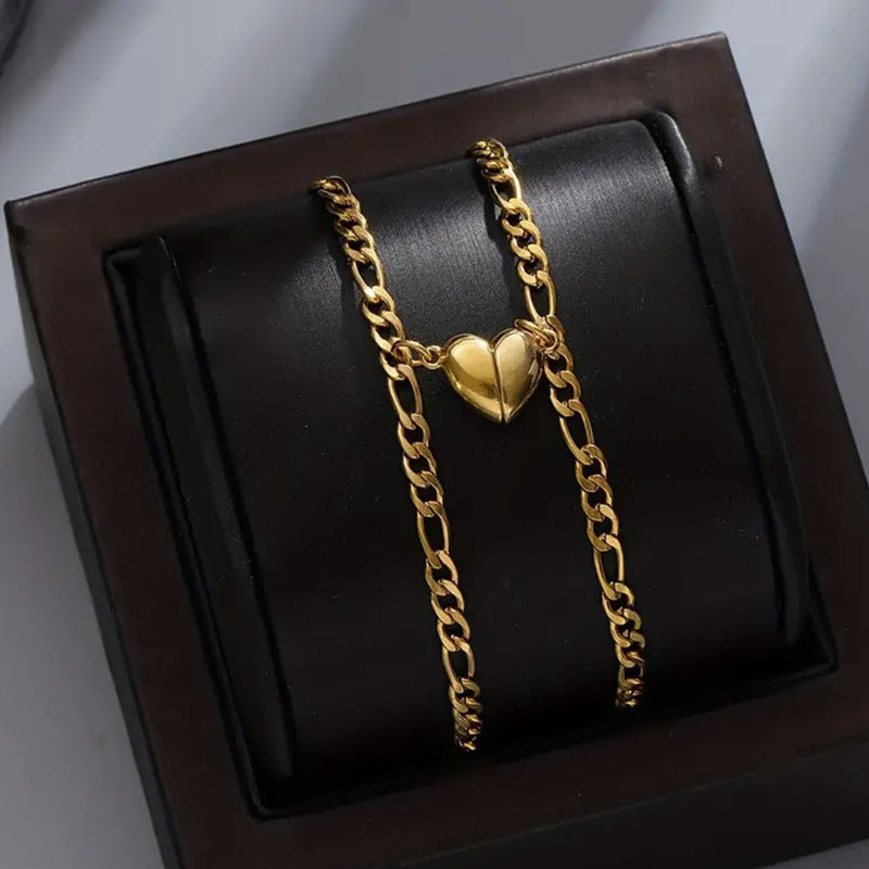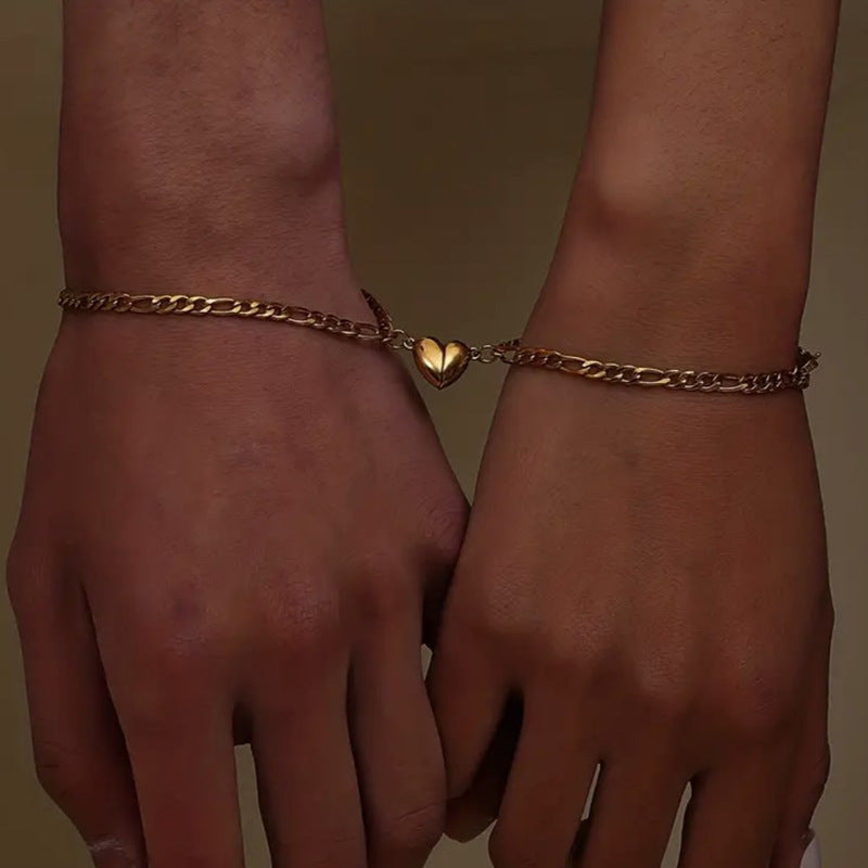 Simple Heart-shaped Titanium Steel Love Magnet Suction Bracelets For Men And Womencouple Pairs